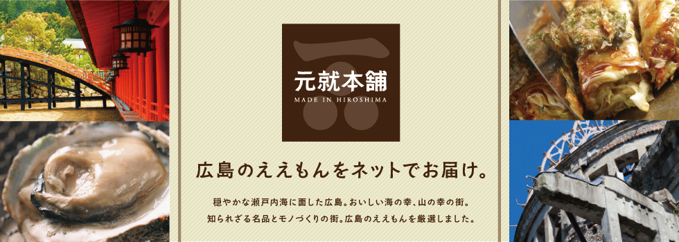 元就本舗では、広島の魅力をもっと皆様に知って頂くために、 広島の魅力的な製品・商品や地元の製造メーカーやブランドなどをリレー形式で紹介しています。 もちろん、元就本舗の掲載商品に限らず、いいものはドンドン紹介していきます。 広島発の逸品・名品の魅力や誕生までのストーリー等をブログを通して皆様にお伝えします。 マスメディアではまだ取り上げられていない知られざる逸品情報をいち早くお届け。 あなたの知らない広島に出会えるかも???